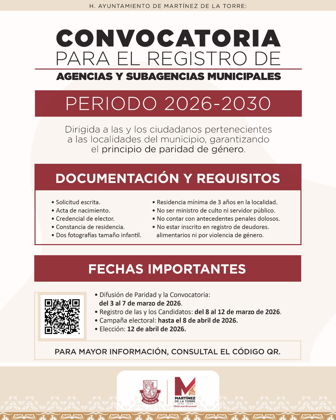 Convocatoria para el Registro de Agencias y Subagencias Municipales 2026-2030