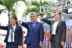 Atzalan, Ver. - Fue en bajos de palacio municipal donde este miércoles se llevó a cabo la toma de protesta de las nuevas autoridades que encabezarán la administración municipal 2026-2029 que estará presidiendo José Homero Domínguez Landa.
