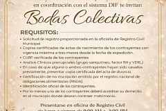 Por lo que ya tiene la oportunidad de acudir al Registro Civil para ser tomados en cuenta para el programa de bodas colectivas donde se unen dos personas que deben comunicarse mucho, darse amor, ver el mismo objetivo, caminar hacia el mismo rumbo que es parte importante de la relación y sobre todo que se unirán dos familias en las que debe habar armonía, paz y cordialidad.