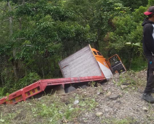 Camión se sale de la carretera