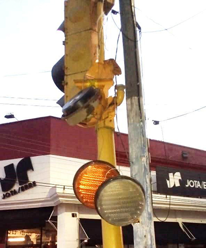 Camioneta destroza Semáforo