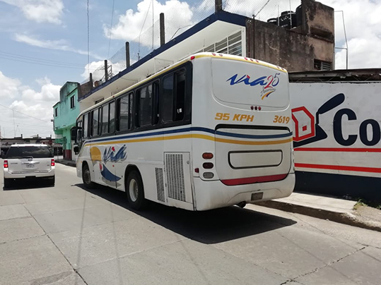 Autobús le destroza el frente a un taxi