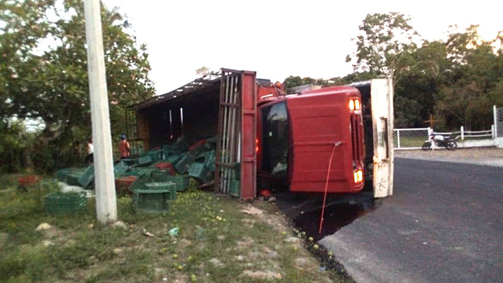 Vuelca pesado camión