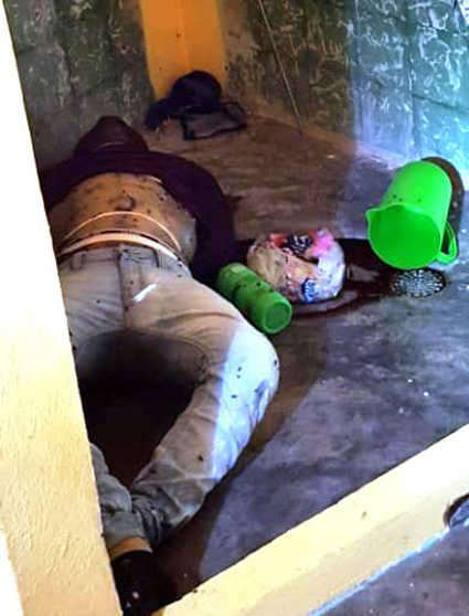 ¡Cadáver maniatado y amordazado!