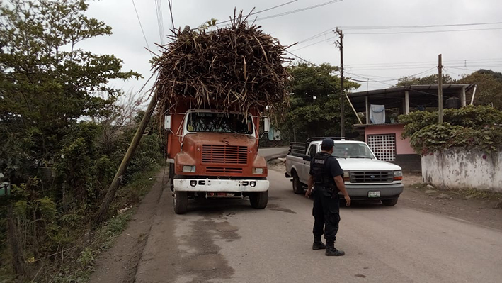 Camión cañero derriba poste