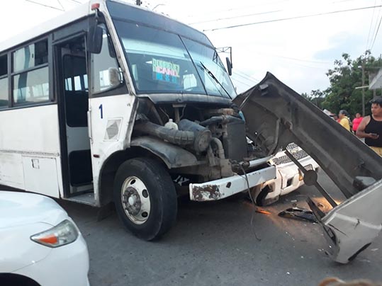 Chocan microbús y camioneta