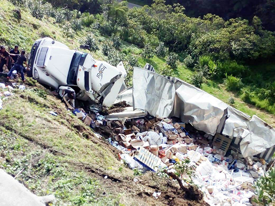 Tráiler se va al barranco y le roban la mercancía