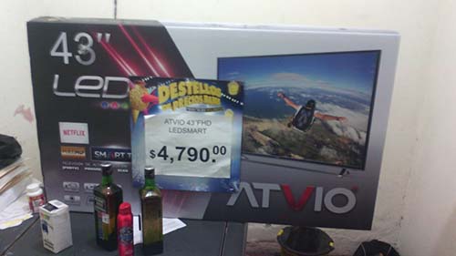 Gracias a las cámaras de circuito cerrado del centro comercial, fue como se sorprendió al joven Martín Herrera Carmona, de 22 años, con domicilio en calle Morelos, quien sustraía sin pagar una televisión LED de 43 pulgadas de la marca ATVIO, dos botellas de WHISKY de 700ml. de la marca PASSPORT SCOTCH, una caja de vitaminas y minerales de marca CENTRUM, un desodorante en aerosol de marca OLD SPICE.