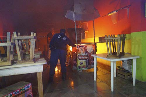 Tlapacoyan, Ver.- Un conato de incendio se dio en la zona centro de la ciudad, en donde al parecer el incendio fue provocado por el descuido de los empleados del negocio que no se percataron que habían dejado brasas en un bote de basura y estas alcanzaron a prender una lona y madera.