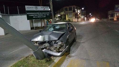 Tlapacoyan, Ver.- Conductor de un automóvil de San Pedro Tlapacoyan terminó en el Hospital Civil, luego de haberse impactado contra un poste en el bulevar Luis Donaldo Colosio, la madrugada de este domingo.