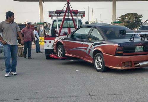 El vehículo abandonado es un Cavalier color café con naranja con placas de circulación LTA9426, el cual presentaba una fuga de gas, misma que fue atendida por elementos del Cuerpo de Bomberos.