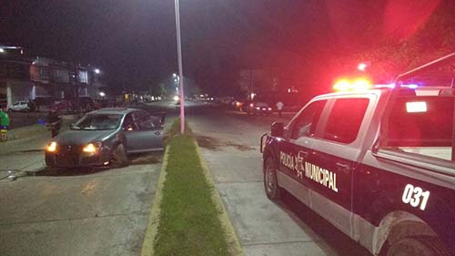 Martínez de la Torre, Ver.- Ebrio conductor de un automóvil terminó impactado contra el camellón del bulevar Rafael Martínez de la Torre la noche de este miércoles al perder el control de su unidad, luego que un vehículo le cerrara el paso.