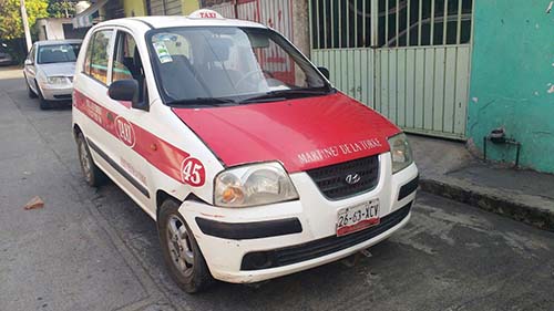 El segundo de los involucrados fue el taxi número económico 45 del sitio 5 de Febrero, color oficial, el cual era conducido por Epifanio Torres Espejel, con domicilio en la calle Monterrey de la colonia México, su unidad presentó daños materiales por el percance.