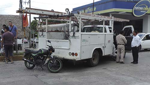 Alrededor de las 14:30 horas, la camioneta de CFE con placas de circulación XU35129, conducida por Francisco Goy Rodríguez, de 34 años, salió de un taller ubicado a la altura de la calle Lucio Blanco, y al querer incorporarse del bulevar a la calle, no advirtió la presencia del motociclista, arrollándolo con el costado de la unidad.