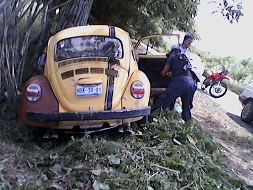Dicho accidente se registró sobre la carretera estatal Misantla-Martínez de la Torre, casi al llegar a la gasolinera de la localidad de Palpoala Ixcán donde el conductor de un vocho color amarillo, con placas de circulación NBK-39-91 del Estado de México, conducido por Víctor Barradas Pozos, de 77 años con domicilio en la calle Batalla de Zacatecas del Estado de México, perdió el control de su unidad y se fue a estrellar contra un árbol.