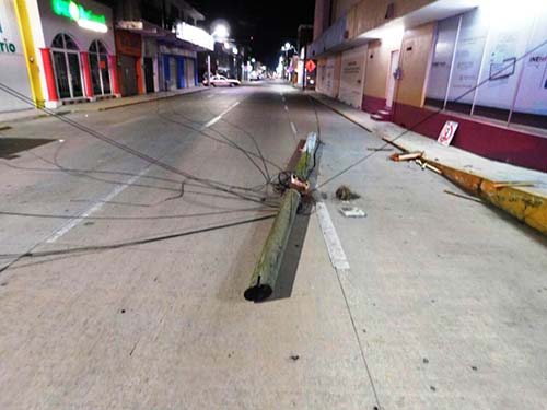 Martínez de la Torre, Ver.- Un poste de la compañía Teléfonos de México (Telmex) fue derribado por un veloz vehículo de características desconocidas, que luego del percance huyó del lugar, hecho que generó que la vialidad sobre la avenida Ávila Camacho se viera interrumpida por varios minutos debido a lo anteriormente señalado.