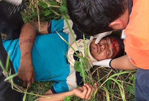 Misantla, Ver.- Amigos de parranda sufren caída de su motocicleta, los hechos se registraron alrededor de las 15:00 horas de ayer, en el camino que conduce a las comunidades de Trapiches - Salvador Díaz Mirón en el municipio de Misantla.