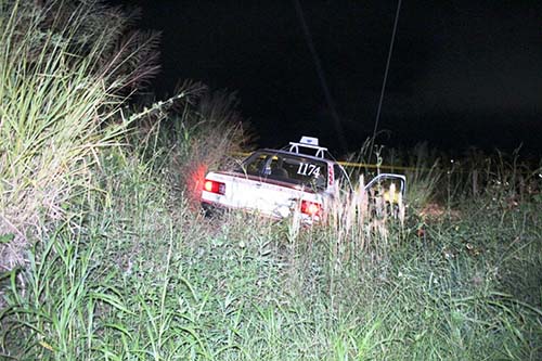 Martínez de la Torre, Ver.- La noche del jueves, el conductor del taxi con número económico 1174, sitio libre, fue asesinado a balazos mientras circulaba sobre la carretera estatal El Diamante-Balsas de Agua, a la altura de la colonia Joyas del Diamante perteneciente a este municipio de Martínez de la Torre.
