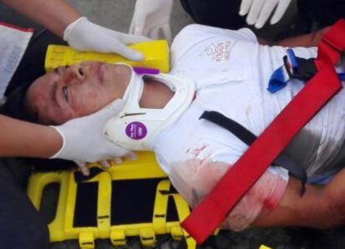 Comerciantes procedieron a solicitar la ambulancia de la Cruz Roja, ya que el lesionado se quejaba de dolor, arribando a los pocos minutos y brindar la atención prehospitalaria al herido.