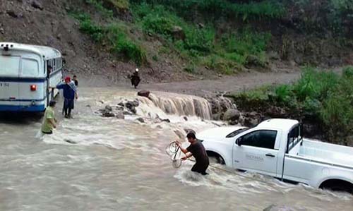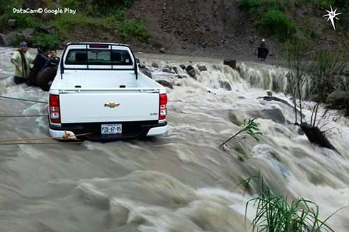 La acción del conductor casi les cuesta la vida a las tres personas, pues debido a que el arroyo estaba crecido por las lluvias, la camioneta fue arrastrada por la fuerte corriente de agua.