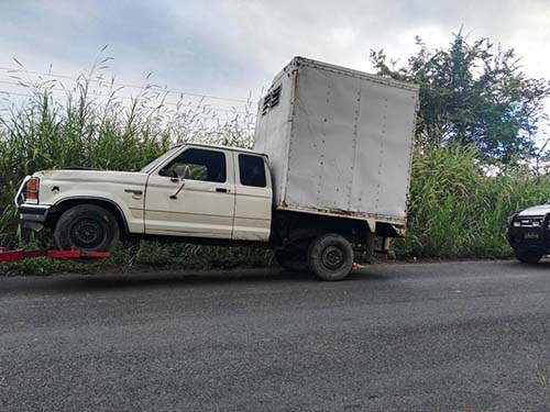 Cuando provenía del rastro de la comunidad Plan de Limón, una camioneta marca Ford, al orillarse mucho de la carretera se volcó sobre su costado para caer entre los matorrales, fue necesaria la presencia de una grúa ponerla sobre sus ruedas y ser trasladada a un taller mecánico.