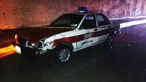 Debido al golpe, el motociclista invadió carril contrario estrellándose de frente contra la unidad marcada con el número económico 1020, con placas de circulación 5334-XDA del Estado, después el cuerpo y la motocicleta siguieron de largo terminando esta última aproximadamente 15 metros del sitio del percance, donde el cuerpo de la víctima rebotó contra otro taxi.
