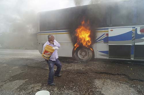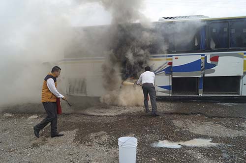 * El autobús a punto de ser consumido por el fuego, fueron evacuados los pasajeros y el conato fue controlado a tiempo
