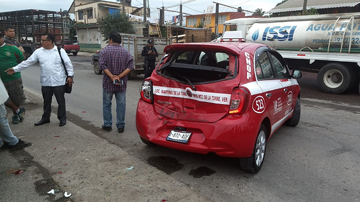 Testigos informaron que detrás del taxi circulaba un tráiler de color blanco, con placas de circulación SK-85119 del Servicio Federal, el cual al circular con exceso de velocidad no le dio tiempo de frenar y terminó embistiendo al taxi, el cual a su vez invadió el carril contrario, justo en el momento en que pasaba la camioneta marca Nissan, tipo estacas, de color gris y con placas de circulación XU-31-392 del Estado, cuyo conductor impactó al taxi que se le atravesó debido al golpe.