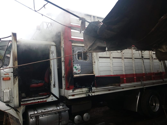 El conato de incendio se dio en la cabina de un camión de carga, donde comenzó a incendiarse, por lo que los vecinos pidieron el apoyo de los servicios de emergencia.