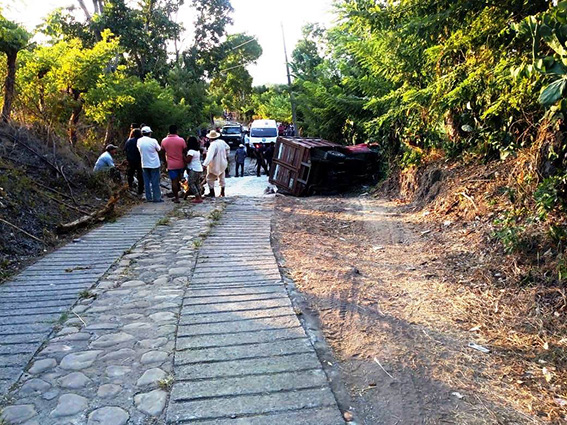Una llamada de emergencia alertó a los cuerpos de auxilio y rescate, para atender una volcadura en la zona baja del municipio.