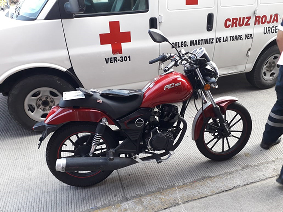 Las unidades involucradas son una camioneta marca Volkswagen, tipo Sandero, color blanco, con placas de circulación XV-39-676 del Estado y una motocicleta marca Italika, tipo RC150, color rojo.