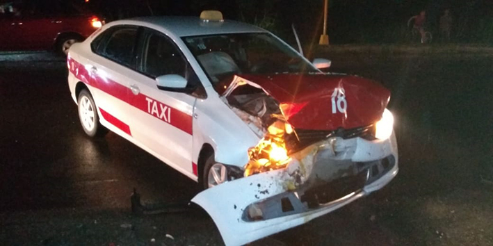 Con diversas lesiones terminó un taxista luego de impactarse contra un auto particular, accidente que dejó como saldo daños materiales.