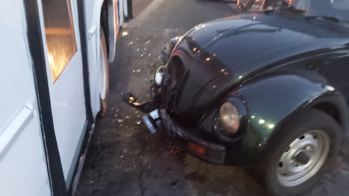 Debido a lo anterior, un automóvil de la marca Volkswagen, tipo vocho, con placas TPK156a del estado de Puebla, conducido por un trabajador de la CFE, se impactó contra el costado de la pesada unidad que se pasó el alto, resultando su unidad con daños.