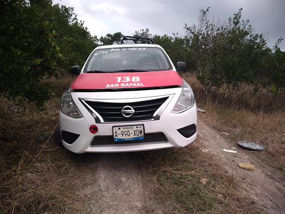 Cerca del mediodía de este lunes, el taxi fue hallado abandonando en una brecha cercana a la comunidad El Negro, en el municipio de Tecolutla, fueron campesinos quienes dieron aviso a la policía.