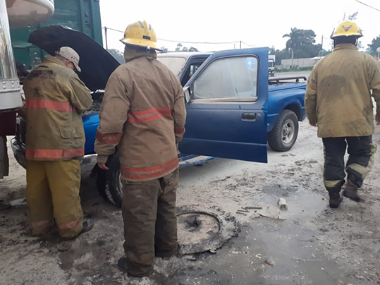 Su conductor identificado como Óscar García Zárate, de 32 años de edad y vecino de la localidad de Villa Nueva de este municipio, comenzó a solicitar apoyo, testigos dieron aviso a los servicios de emergencia mientras que el conductor y personal de la gasolinera se dieron a la tarea de sofocar el siniestro con los extintores de la estación de servicio.
