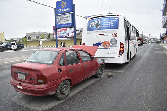 La unidad de Transportes Cabellal marcada con el número económico 146 se detuvo repentinamente siendo impactado en la parte posterior por el automóvil Chevrolet.