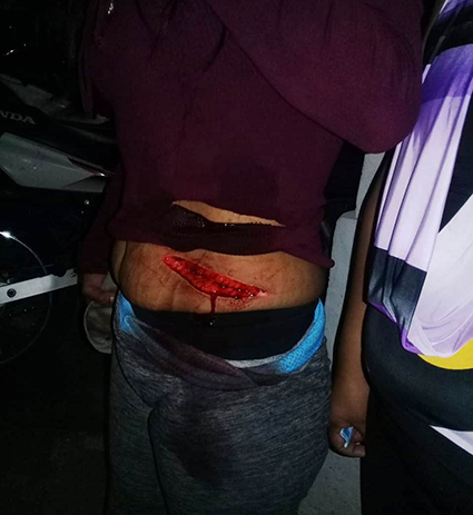 Una cortada de aproximadamente 10 centímetros en el abdomen recibió una mujer la noche del domingo.