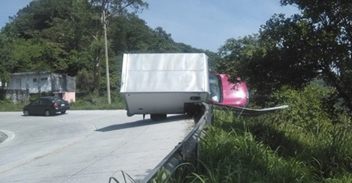 -Conductor de camioneta pierde el control en la Sierra de Misantla, la valla de contención lo salvó