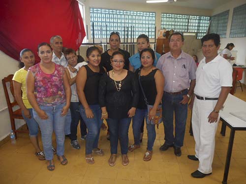 Elizabeth Figueroa y Antonio Márquez Bonilla, directora de la escuela Manuel Ávila Camacho y la sociedad de padres de familia en el saludo.